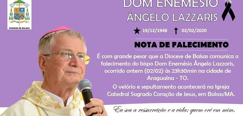 A Província Franciscana Nossa Senhora da Assunção do Maranhão e Piauí recebe com grande pesar a notícia do falecimento de Dom Enemésio Ângelo Lazzaris, PODP, religioso Orionita e Bispo da Diocese de Balsas-MA, ocorrido nessa noite (2) na cidade de Araguaina-TO. Dom Enemésio era o atual bispo da Diocese de Balsas. Foi presidente da Comissão […]